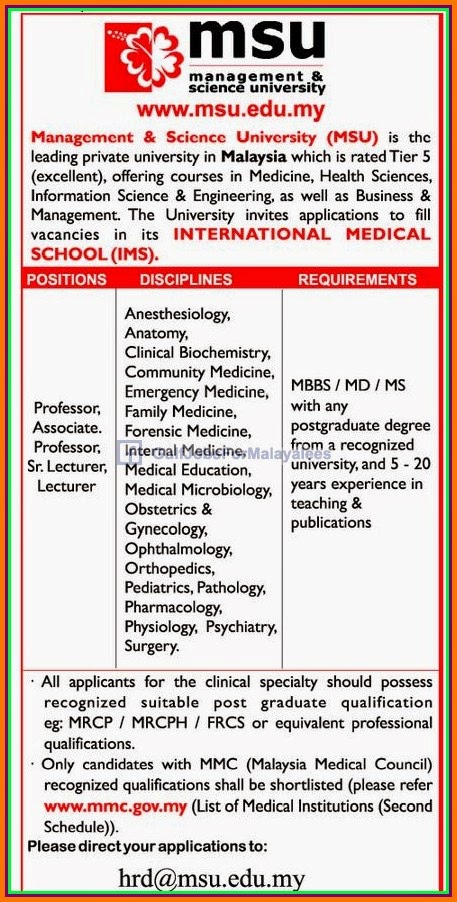 Lecturers Senior Lecturers Medical Sciences Job In Malaysia Learning Library Timesascent Com